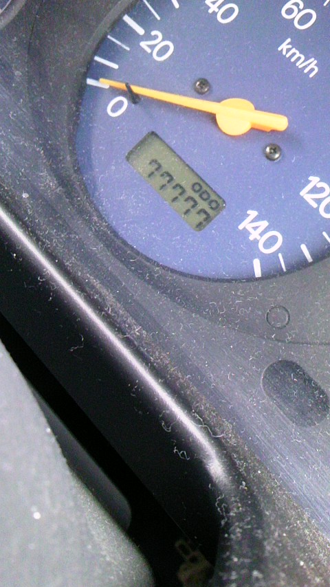 その車の走行距離がなかなかめでたい数字になりましたので、写メしました。